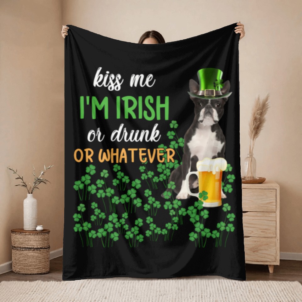 Buy stunning Boston Terrier Kiss Me I'm Irish Or Drunk Or Whate Throw Blankets or see more Throw Blankets products at Printblur right now to receive many amazing discounts!