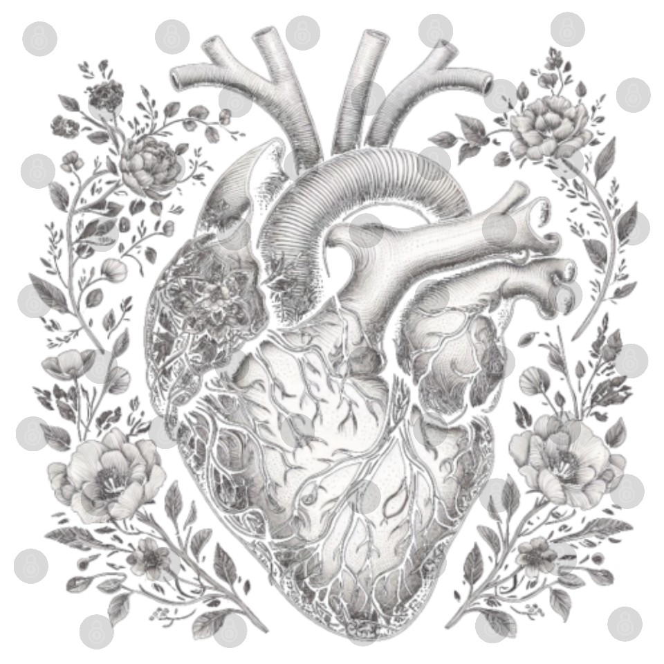 You're taking a peek at the product Botanical Heart Artistic Anatomy Digital Files For WHITE belong theme Digital Files at Printblur