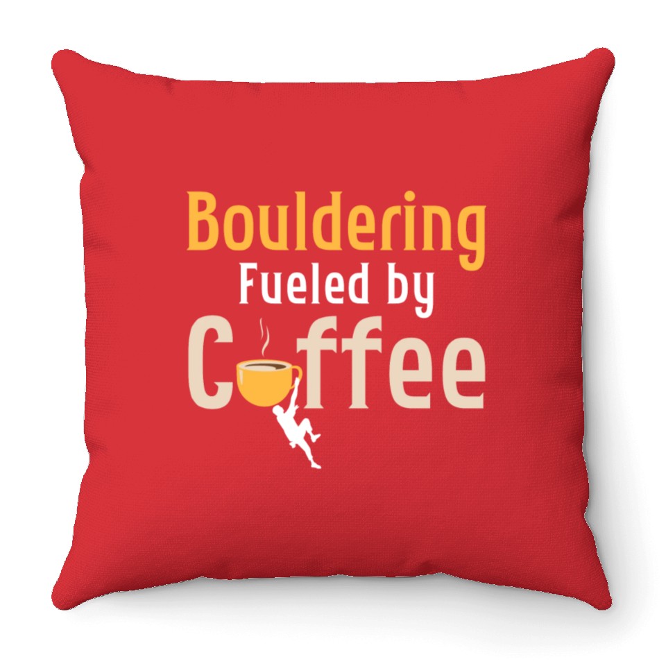 You are shopping for a stunning and trendy product Bouldering Fueled By Coffee Climbing Boulder Throw Pillows For Cover Only Red belong theme Throw Pillows at Printblur