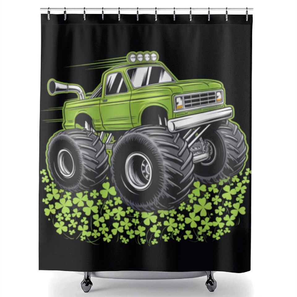 The product unique design you searched for is Boys St Patricks Day Toddler Lucky Monster Truck Shower Curtains For Black belong theme Shower Curtains at Printblur