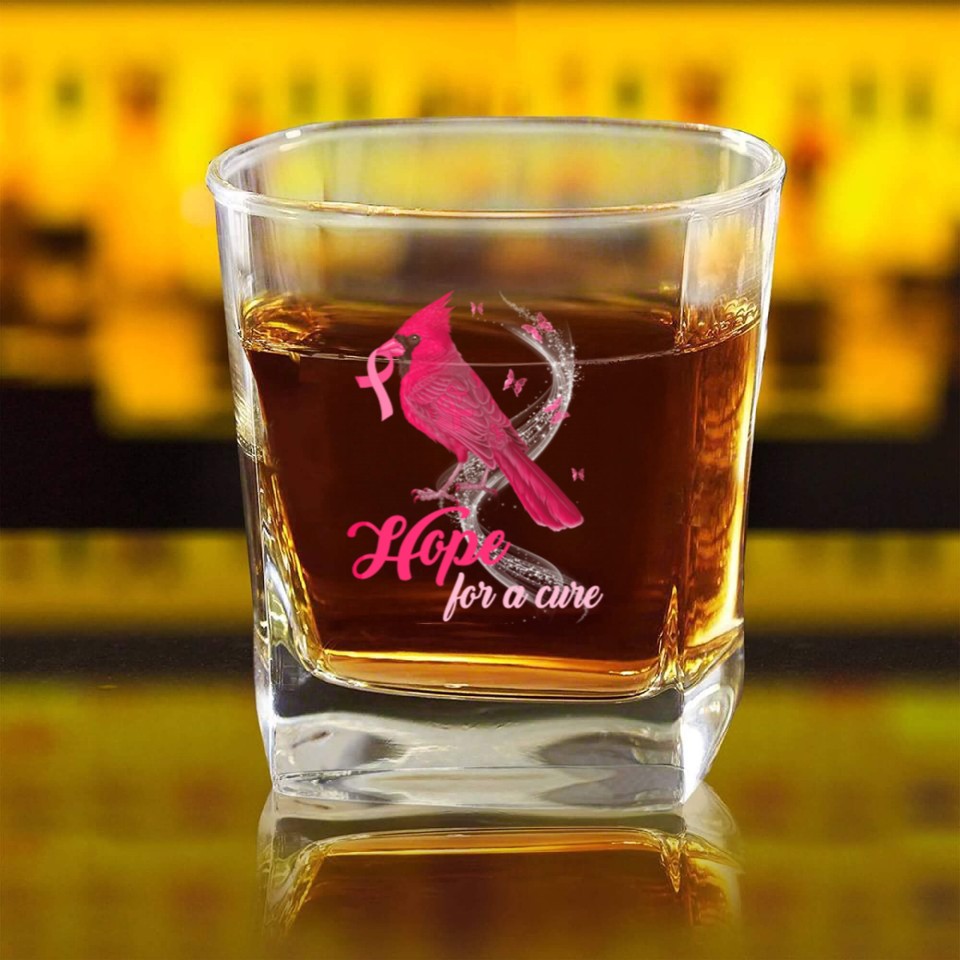 The product unique design you searched for is Breast Cancer Cardinal bird hope for a cure Square Whiskey Glasses For belong theme Square Whiskey Glasses at Printblur