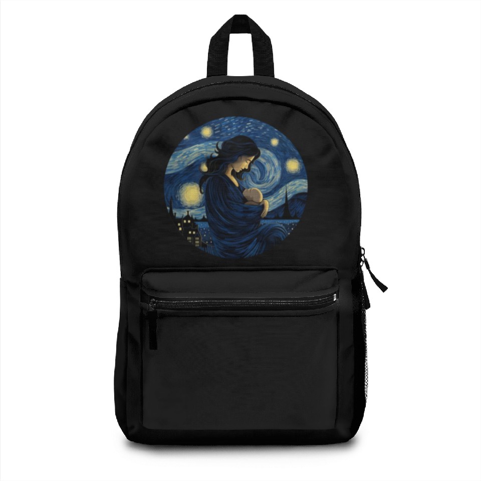 You're looking at the eye-catching product Breastfeeding Starry Night Backpacks Motherhood For Black belong theme Backpacks at Printblur