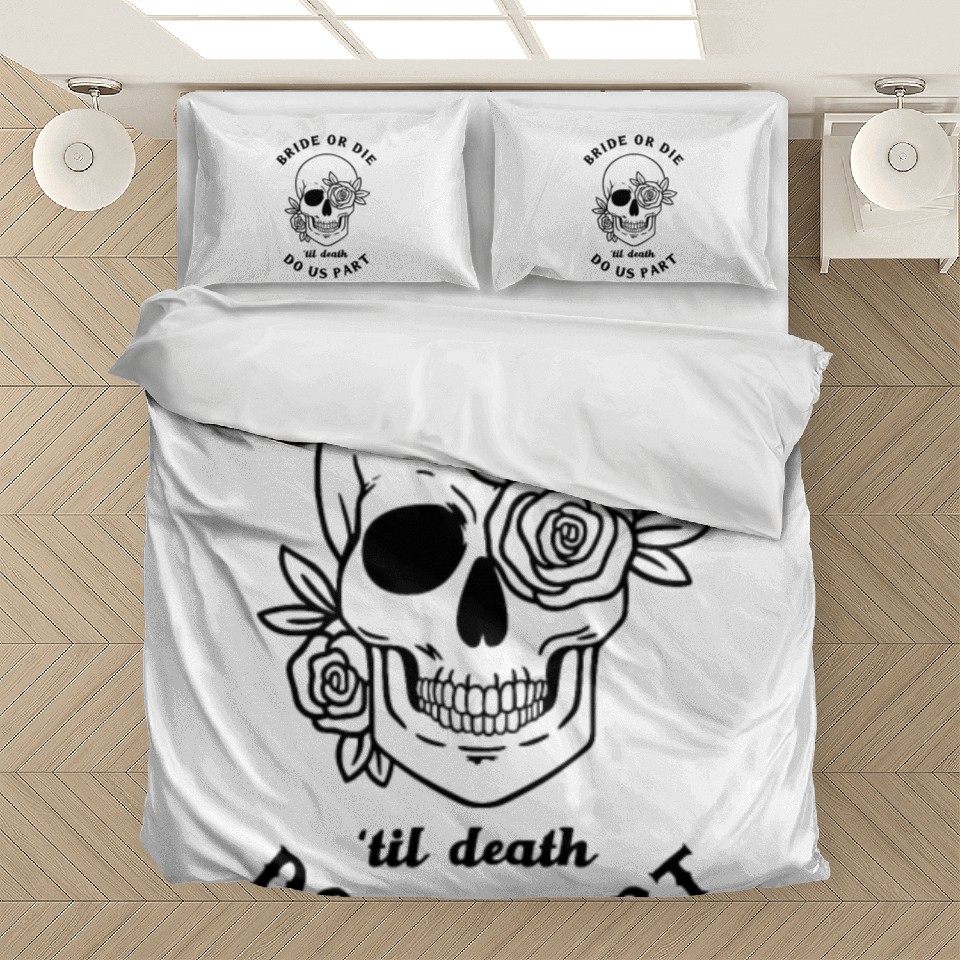 Buy eye-catching Bride or die skull til death do us part Bedding Sets or see more Bedding Sets products at Printblur shop now to explore many surprises from our shop!