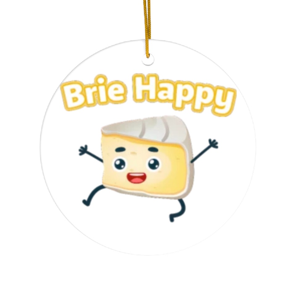 You are viewing an exclusive and elegant product Brie Happy: Cheesy Pun for Cheese Lovers Ceramic Ornaments For WHITE belong theme Ceramic Ornaments at Printblur