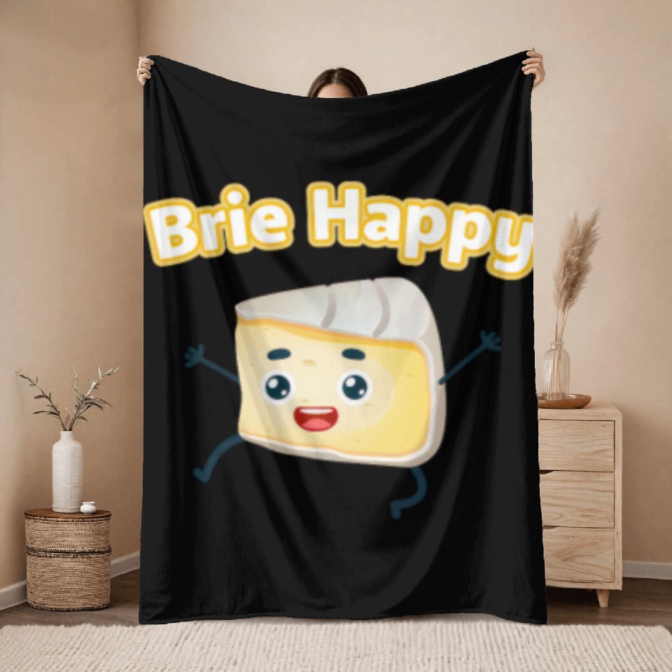 You are viewing an exclusive and elegant product Brie Happy: Cheesy Pun for Cheese Lovers Throw Blankets For Black belong theme Throw Blankets at Printblur