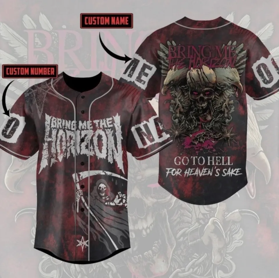 Shop for impressive Bring Me The Horizon Baseball Jersey Go To Hell For Heavens Sake or see more Baseball Jerseys products right now on Printblur to enjoy your happiness!