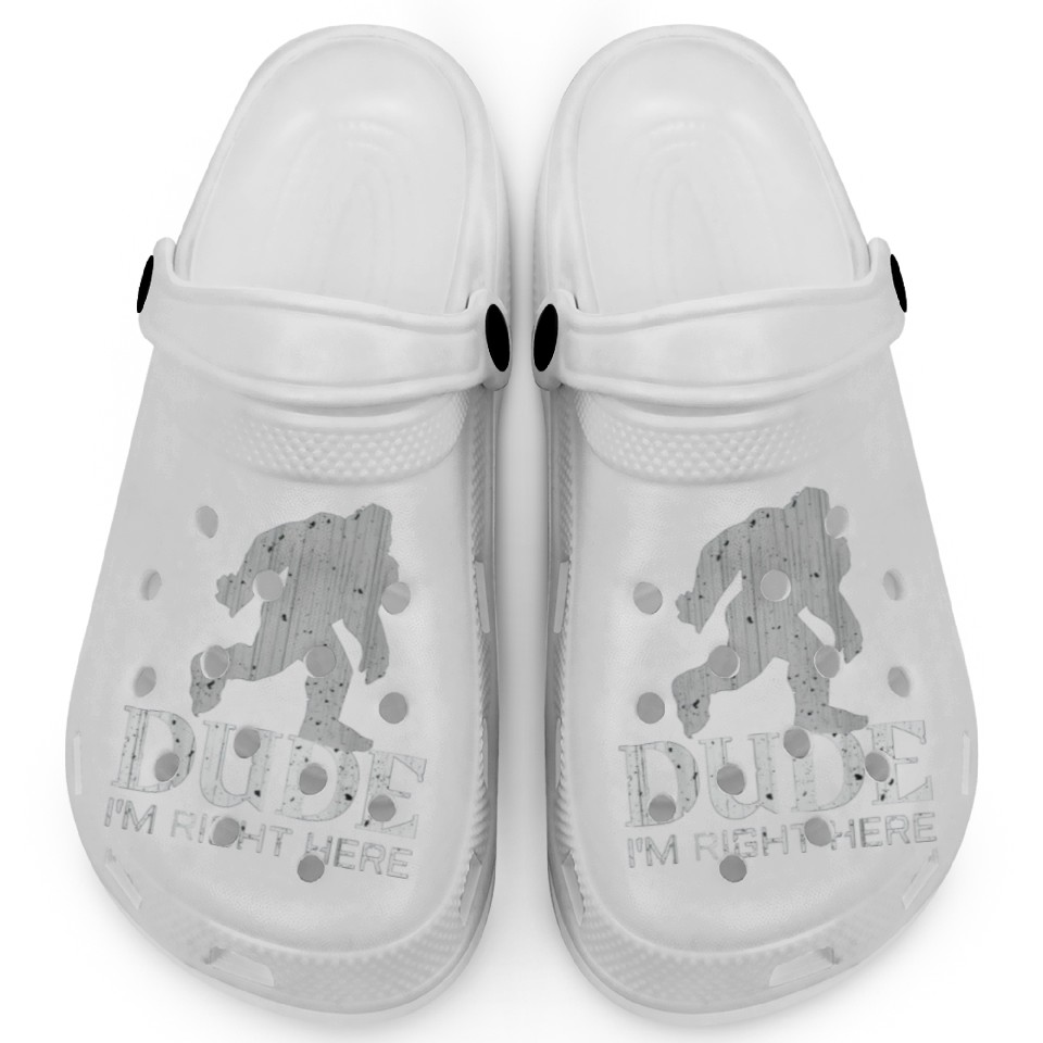You're taking a peek at the product Bruh I'm Right Here Yeti Bigfoot Sasquatch Clogs For Kids WHITE belong theme Clogs at Printblur