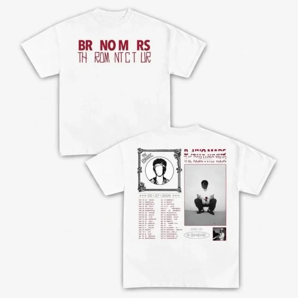Shop for attractive Bruno Mars The Romantic Tour 2026 Double Sided T-Shirt or see more Double Sided T-Shirts products on https://printblur.com right now!