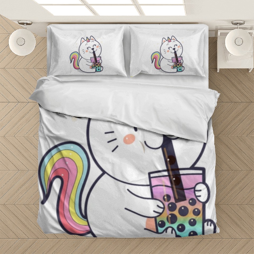 Shop for impressive Bubble Tea Cute Kawaii Unicorn Cat Japanese Bedding Sets or see more Bedding Sets products right now on Printblur to enjoy your happiness!