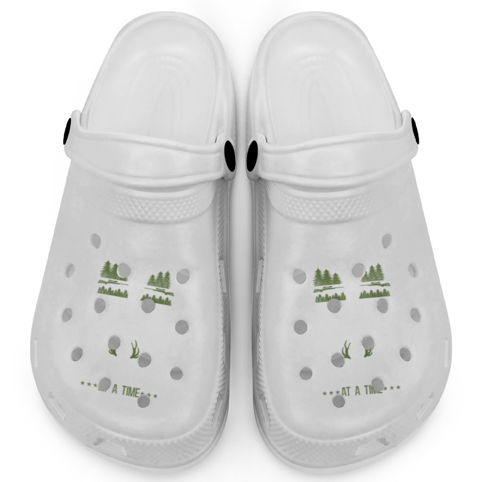 You're taking a peek at the product Buck Deer Hunting Hunter Wife Clogs For Kids WHITE belong theme Clogs at Printblur