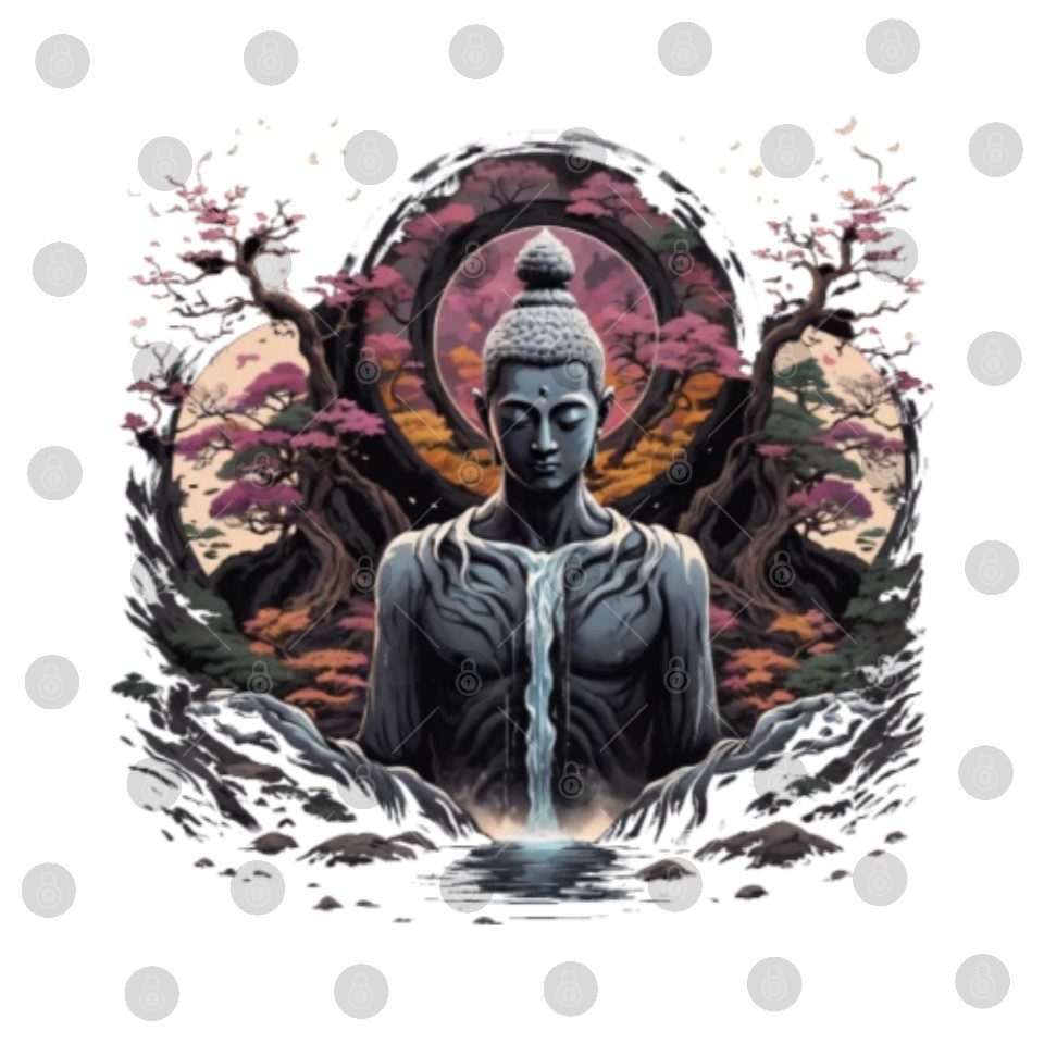 You are seeing a unique and impressive product Buddha's Serenity: Cherry Blossom Waterfall Digital Files For WHITE belong theme Digital Files at Printblur