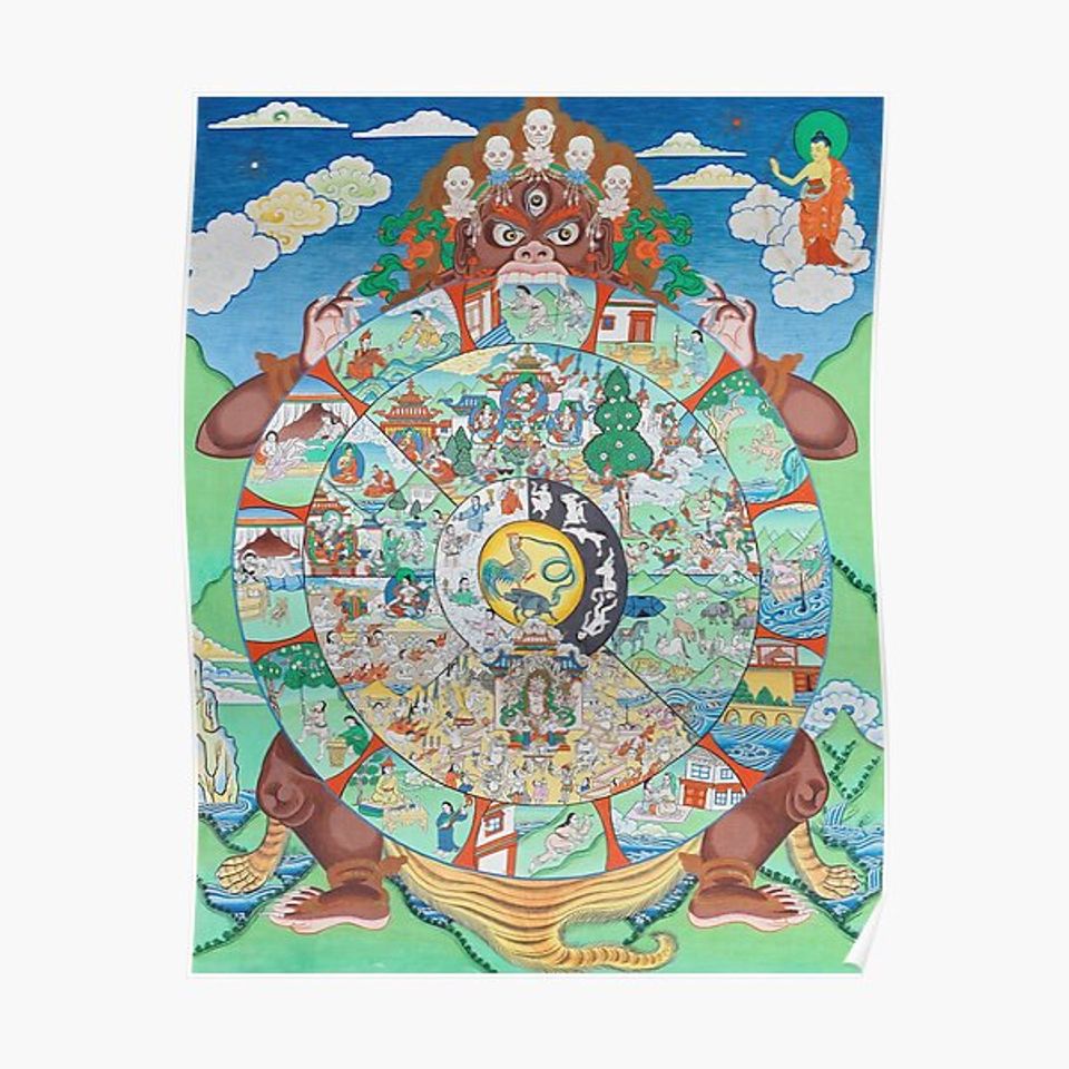 Buy stunning Buddhist Wheel of Life Thangka Reincarnation Samsara Bhavacakra Premium Matte Vertical Poster or see more Premium Matte Vertical Posters products at Printblur right now to receive many amazing discounts!