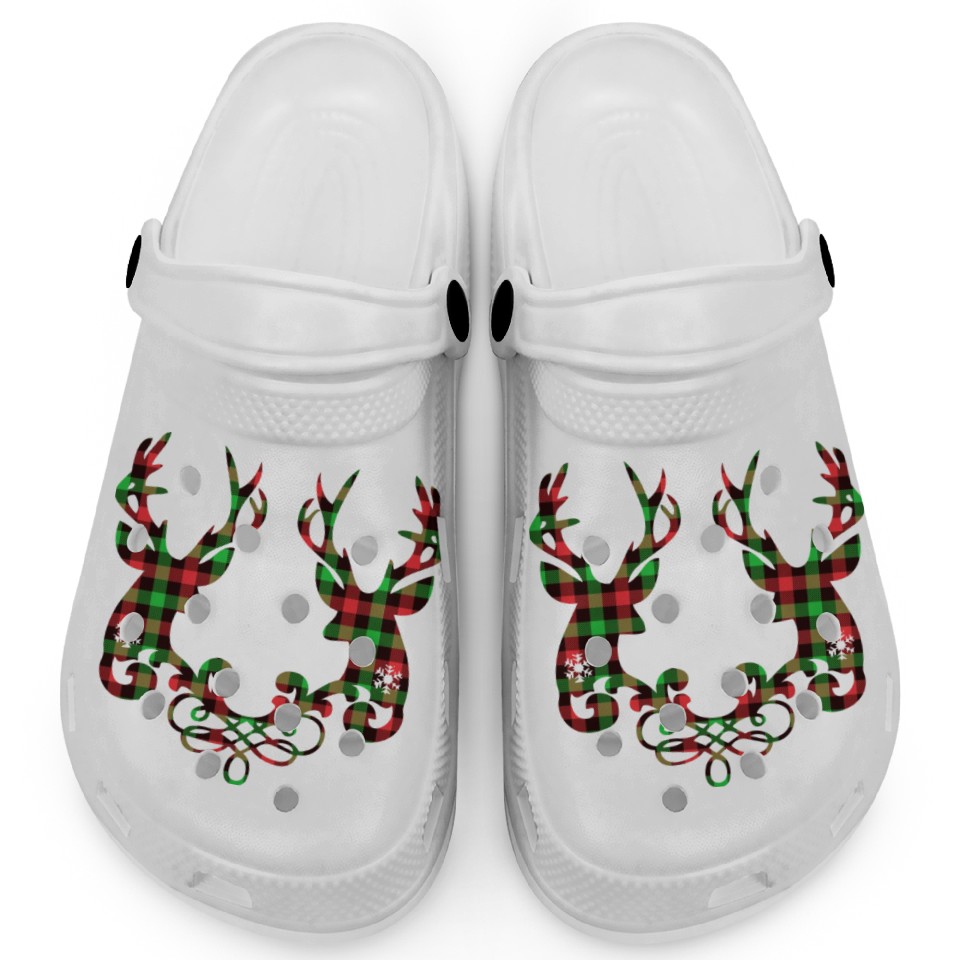 The product unique design you searched for is Buffalo plaid deer couple Clogs For Kids WHITE belong theme Clogs at Printblur