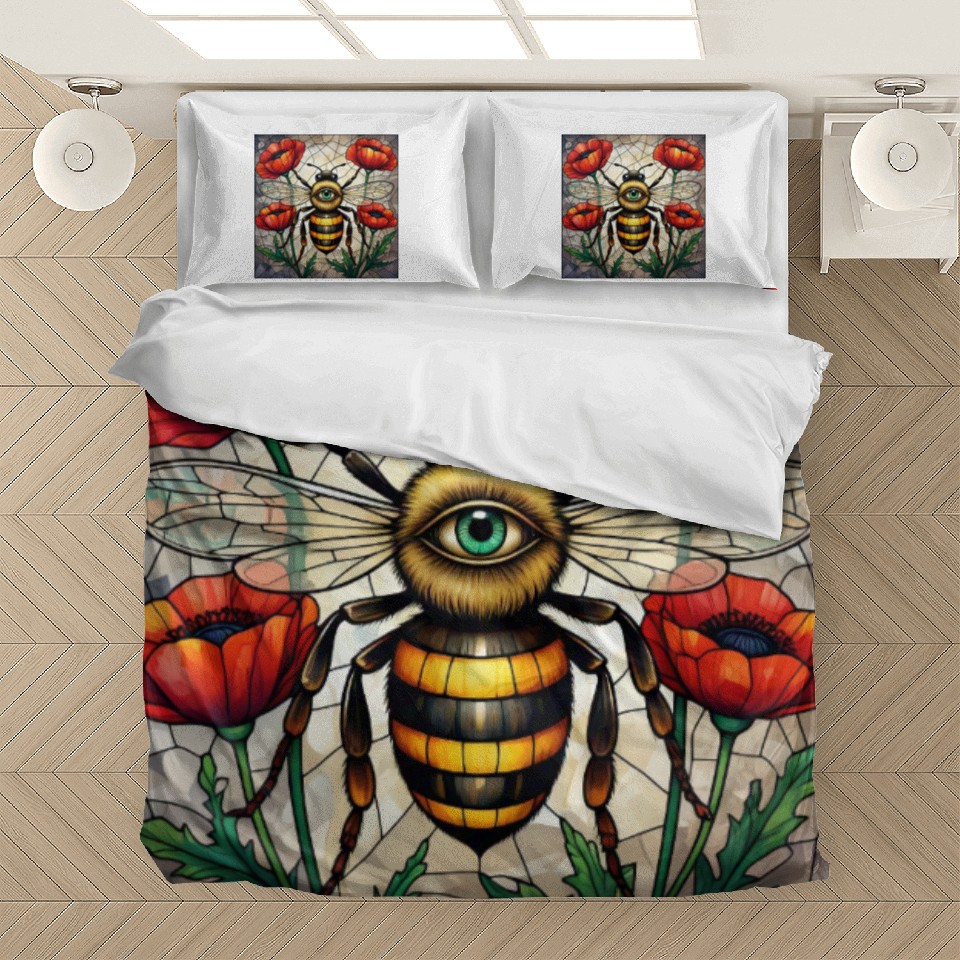 Own fascinating Bumble bee stained glass vibrant poppy flower eye Bedding Sets or see more Bedding Sets products now from Printblur shop to enjoy your shopping time!