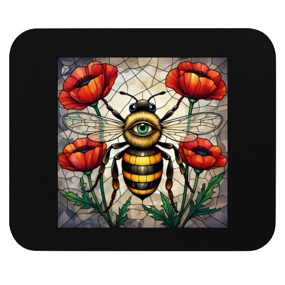 Buy eye-catching Bumble bee stained glass vibrant poppy flower eye Mouse Pads or see more Mouse Pads products at Printblur shop now to explore many surprises from our shop!