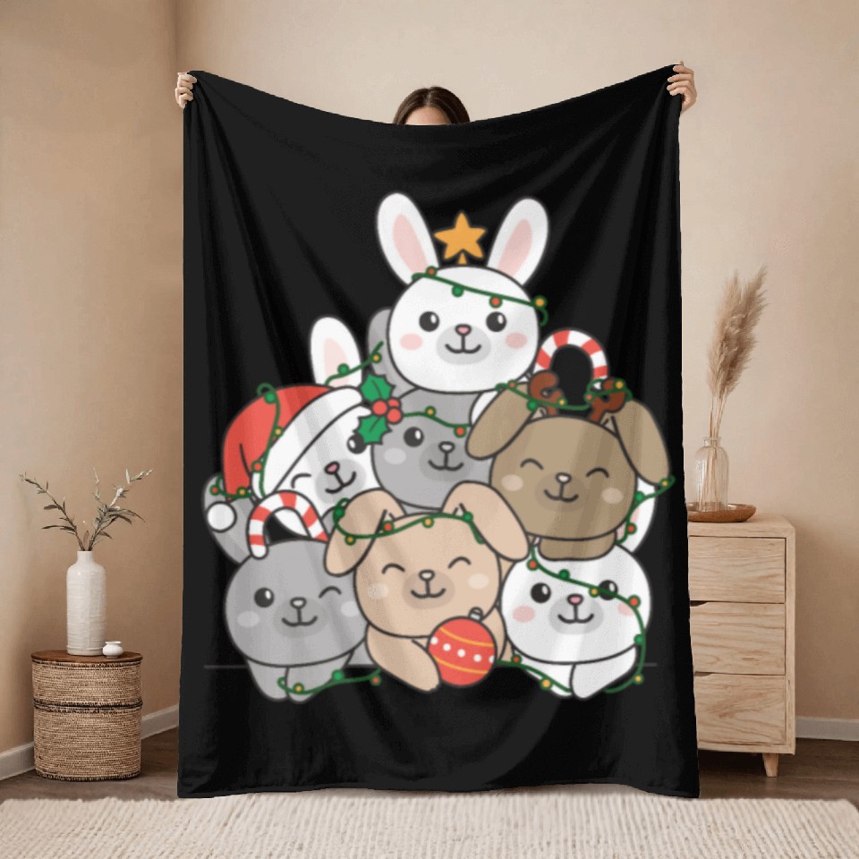 You are viewing one of the trendiest products Bunny Christmas Tree Funny Animal Christmas Throw Blankets For Black belong theme Throw Blankets at Printblur