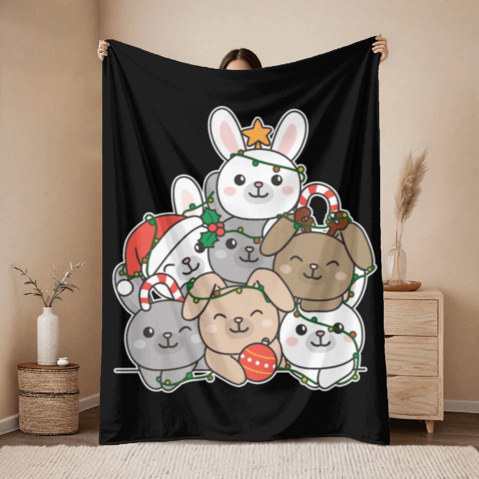 You are seeing a unique and impressive product Bunny Christmas Tree Funny Animal Christmas Throw Blankets For Black belong theme Throw Blankets at Printblur