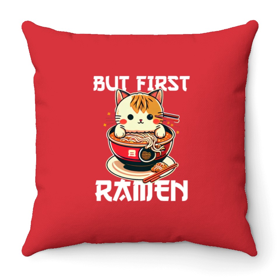 You are shopping for a stunning and trendy product But First Ramen Cat Japanese Tokyo Ramen Noodles Throw Pillows For Cover Only Red belong theme Throw Pillows at Printblur