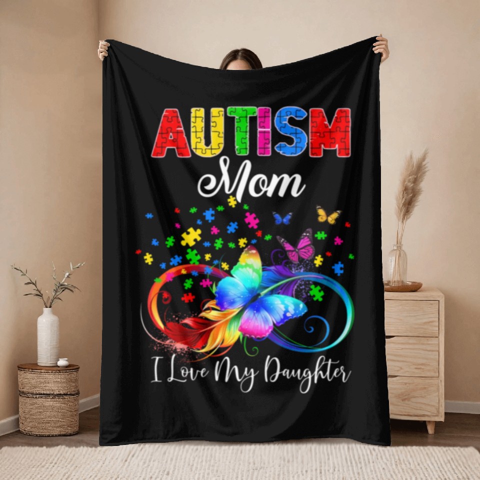 You are shopping for a stunning and trendy product Butterfly Autism Mom I Love My Daughter Support Au Throw Blankets For Black belong theme Throw Blankets at Printblur
