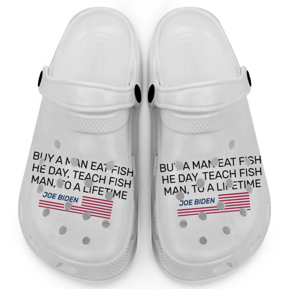 The item hot trend you're looking at is Buy A Man Eat Fish He Day Teach Fish Man To A Life Clogs For Kids WHITE belong theme Clogs at Printblur