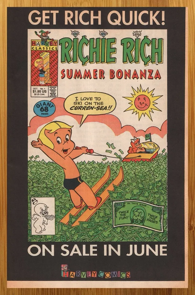 The product unique design you searched for is 1990 Harvey Comics Richie Rich Summer Bonanza Vintage Print Poster For belong theme Premium Matte Vertical Posters at Printblur