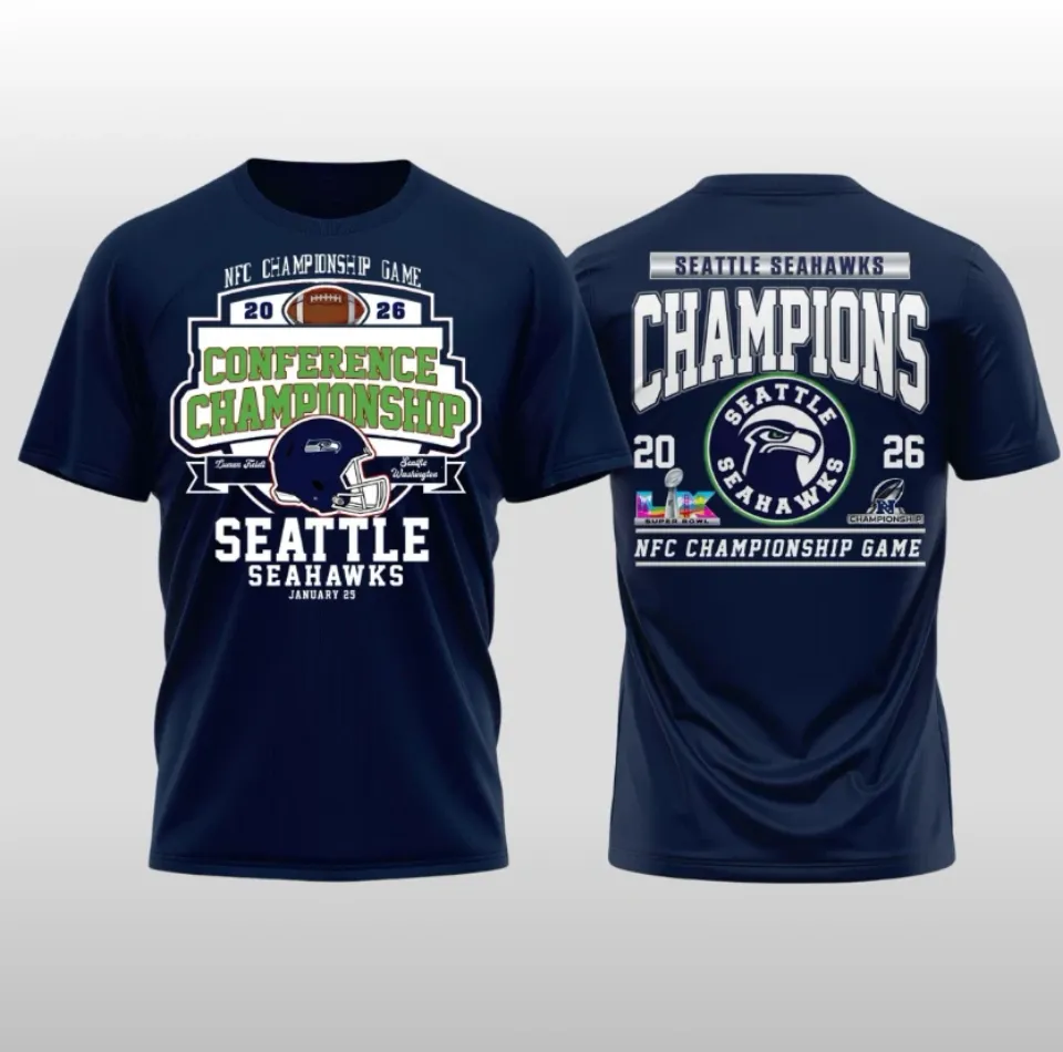 Buy stunning 2026 Seattle Seahawks NFC Conference Champions Game Hoodie Shirt or see more 3D T Shirts products at Printblur right now to receive many amazing discounts!