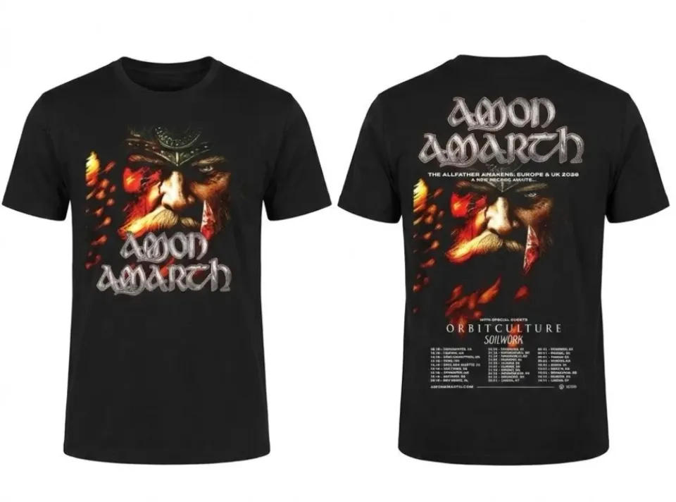 You are viewing an exclusive and elegant product Amon Amarth T-Shirt, The Allfather Awakens Tour 2026 tshirt For Men Black belong theme Double Sided T-Shirts at Printblur
