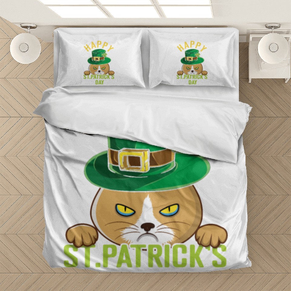 Own fascinating Angry Mad Cat Happy Saint Patrick Day Bedding Sets or see more Bedding Sets products now from Printblur shop to enjoy your shopping time!