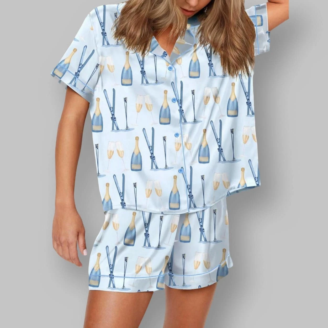 You are seeing a unique and impressive product Après Ski Champagne Pajamas Set For Women For Kids belong theme Short Pajamas Set with Pocket at Printblur