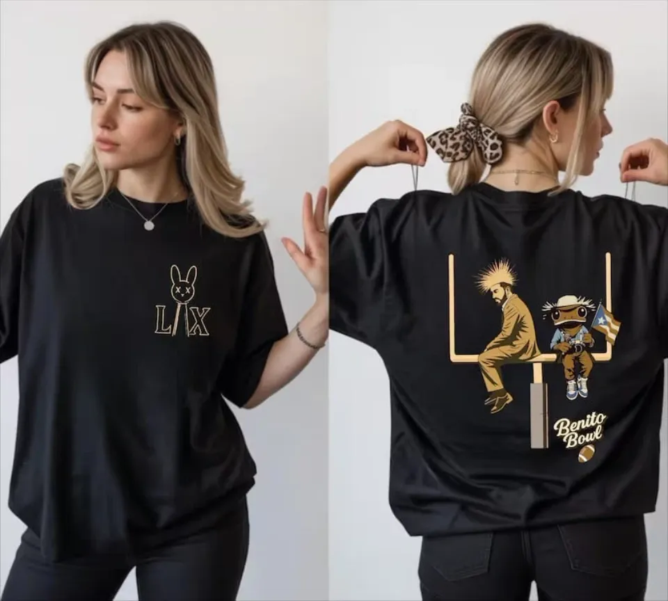 You are contemplating one of the best-selling products Bad #94 Bunny Benito Bowl 2026 Football Fan T-Shirt For Men Black belong theme Double Sided T-Shirts at Printblur
