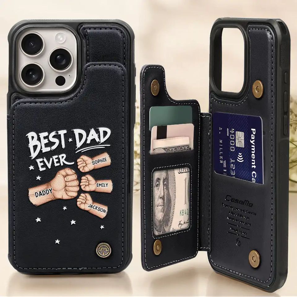 Best Dad Grandpa Ever Fist Bump - Personalized Leather Flip Wallet Phone Case