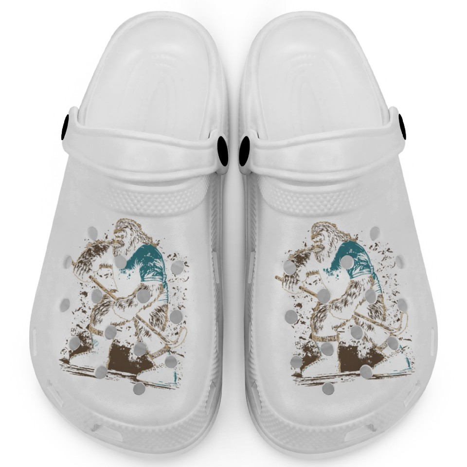 Bigfoot Playing Hockey Lover Funny Design Clogs