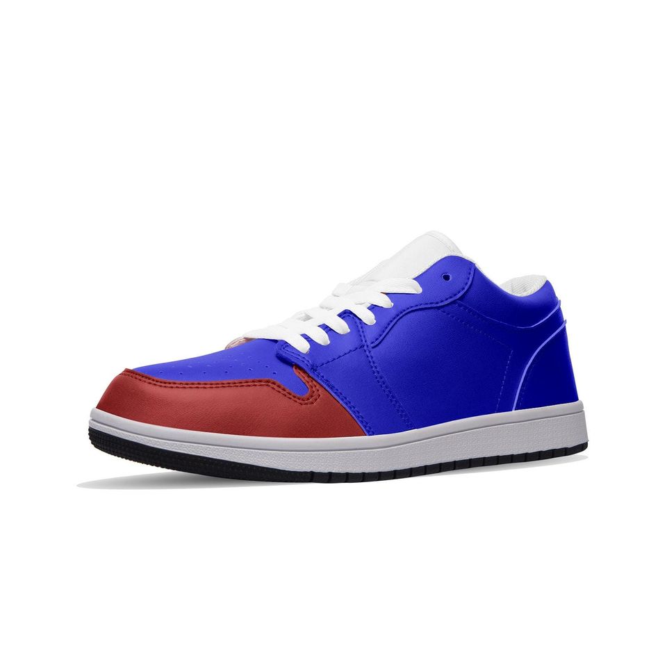 You are viewing an exclusive and elegant product Blue & Red Leather Low Top Sneakers - Unisex Basketball Shoes For Women belong theme Leather Low Top Sneakers at Printblur