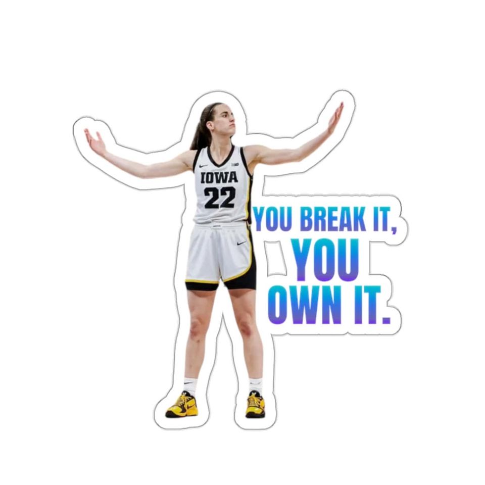 The product unique design you searched for is Caitlin Clark "You Break It, You Own It." Sticker, Gifts for Fan For belong theme Stickers at Printblur
