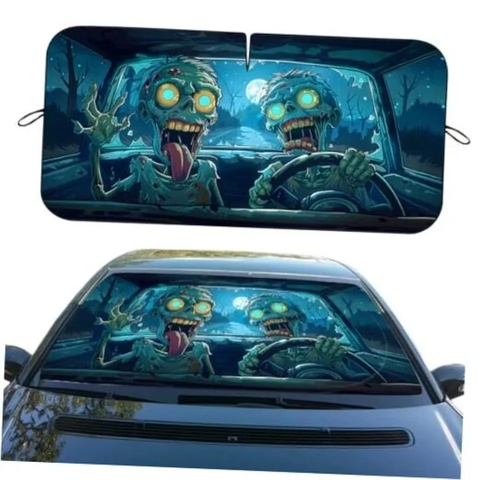 You are seeing a unique and impressive product Car Front Window Sun Shield Cool Cartoon Halloween 59"L x 31.5"W Funny Zombie For belong theme Car Sun Shade For Windshield at Printblur
