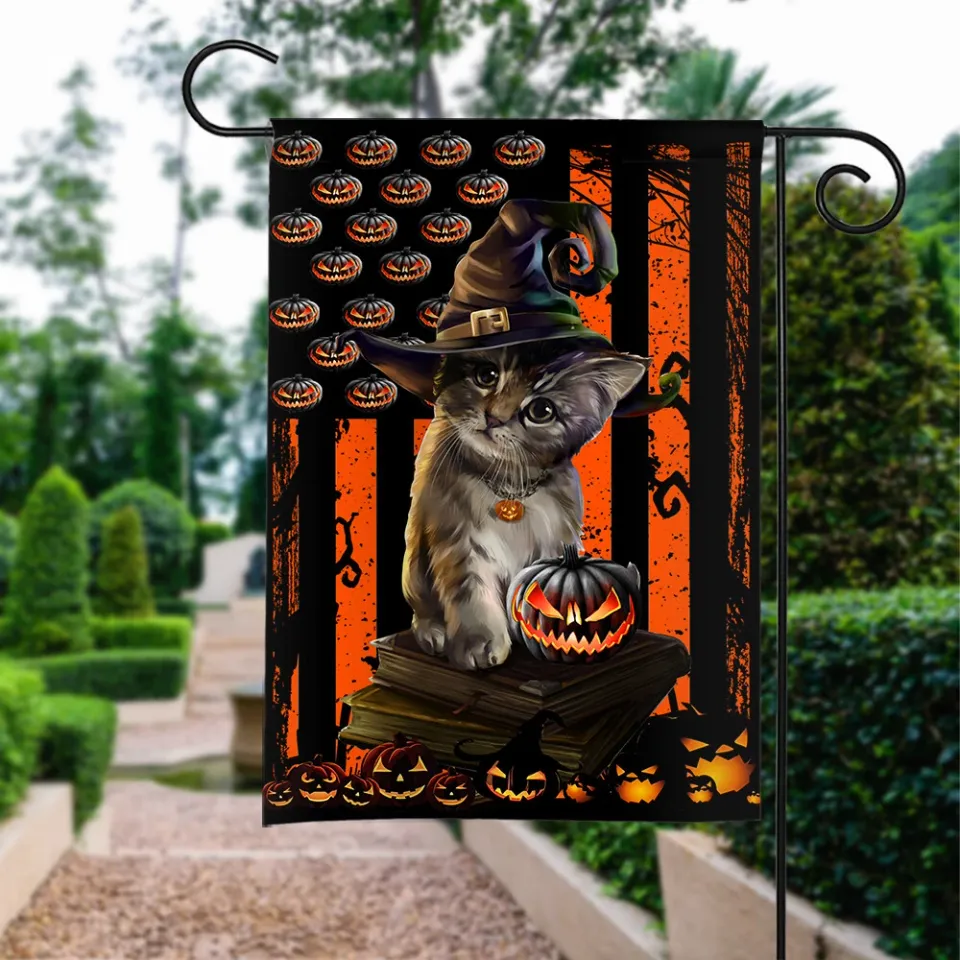 You're looking at the eye-catching product Cat Happy Halloween Flag, Cat Pumpkin Flag, Cat Witch Flag For belong theme Garden Flags at Printblur