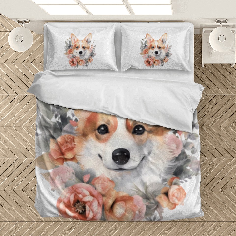 The product unique design you searched for is Corgi Dog Watercolor Floral Bedding Sets For WHITE belong theme Bedding Sets at Printblur