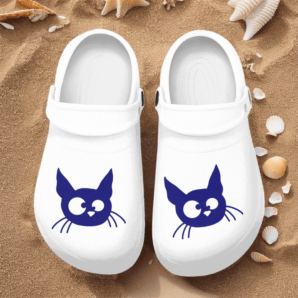 The item hot trend you're looking at is Crazy Cat Squinting Funny Eyes Grimace Fun Cartoon Nurse Clogs For Men WHITE belong theme Nurse Clogs at Printblur