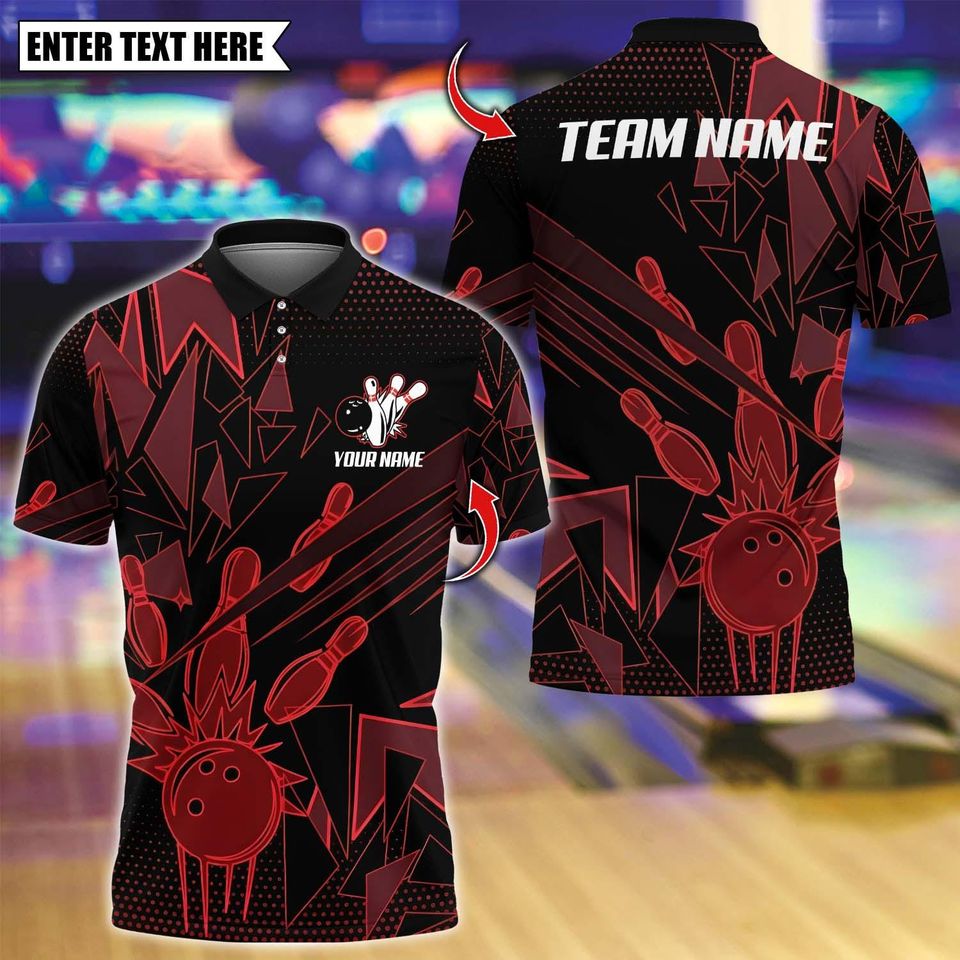You're searching for a one-of-a-kind product Custom Bowling Team Polo Shirt with Multicolor Bowling Pins Design, Personalized Name and 3D Logo for Men For Men belong theme Polo shirts at Printblur