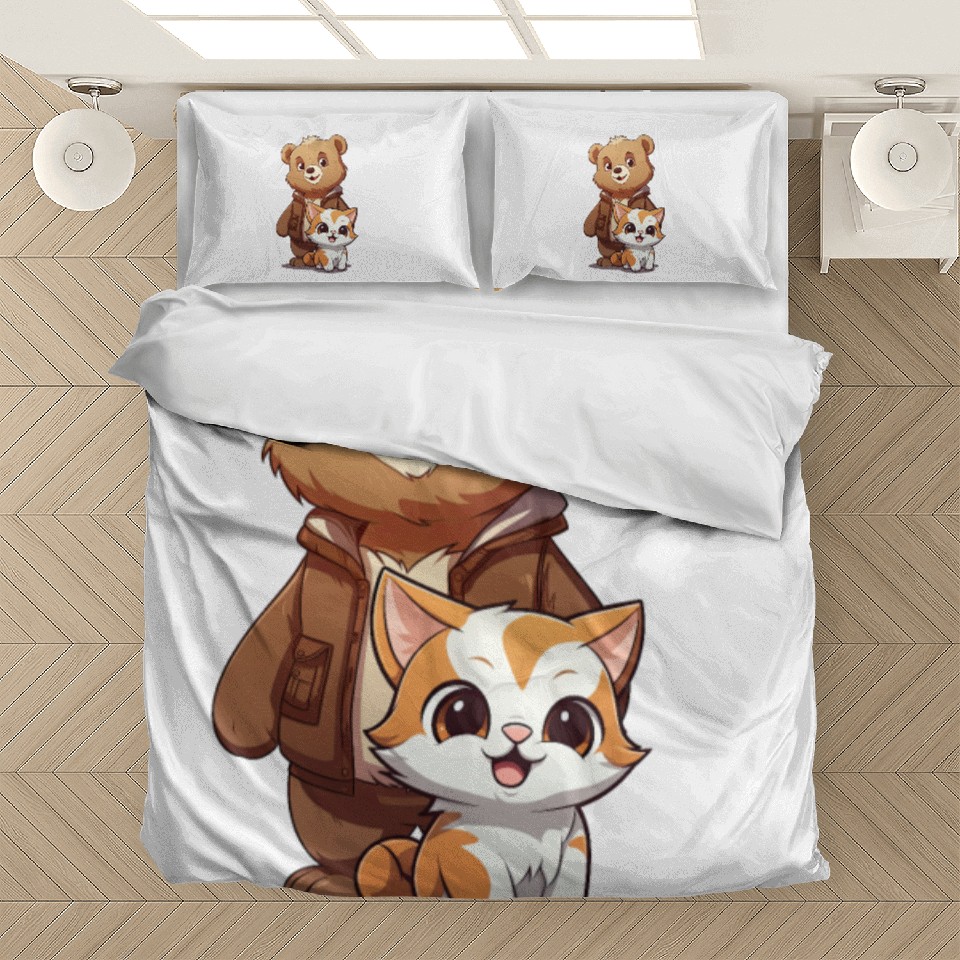 Shop for impressive cute kitty cat and teddy bear in cartoon style Bedding Sets or see more Bedding Sets products right now on Printblur to enjoy your happiness!