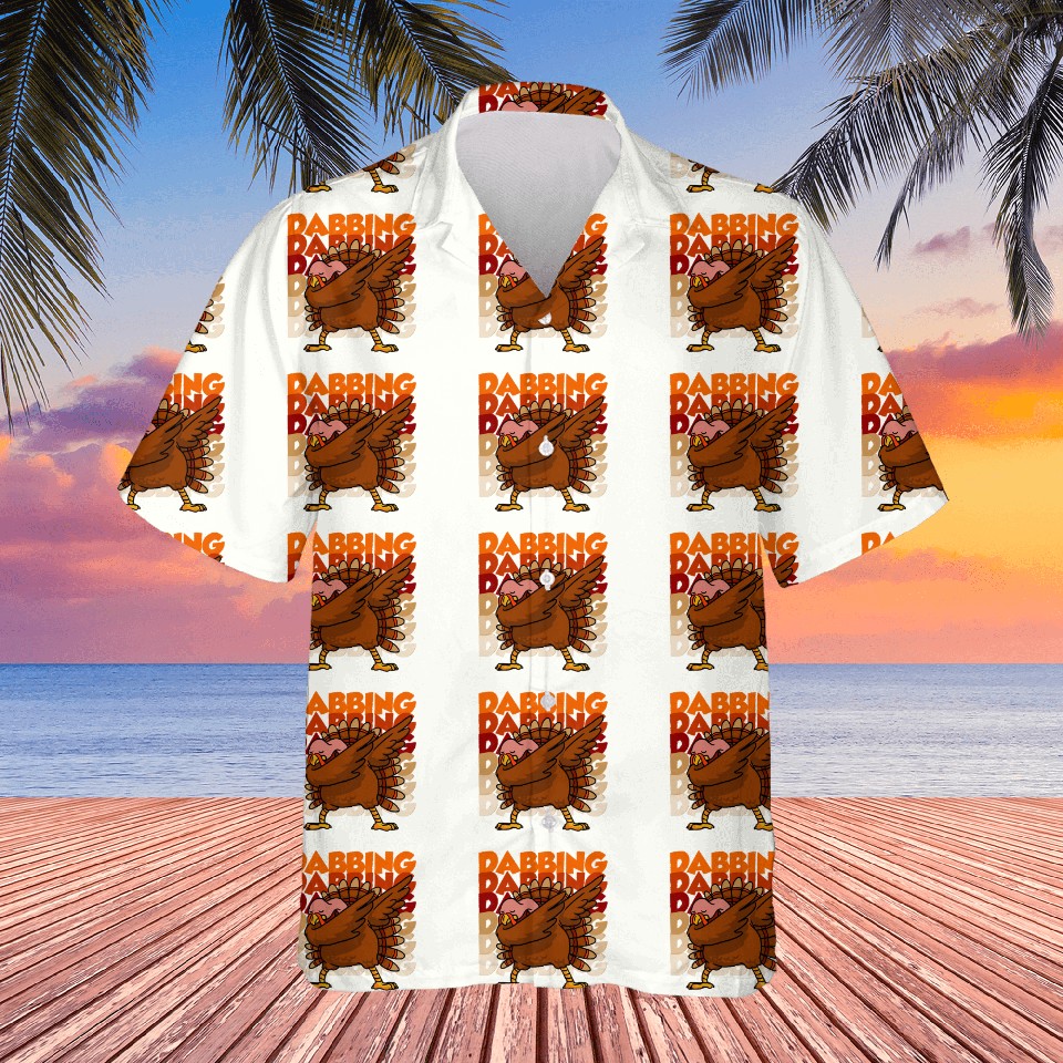 You are viewing one of the trendiest products Dabbing Turkey Hawaiians Thanksgiving For WHITE belong theme Hawaiian Shirts at Printblur