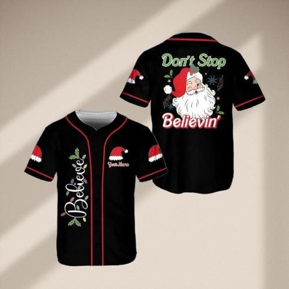 Buy stunning Don't Stop Believin Christmas Baseball Jersey with Custom Name, Holiday Gift or see more Baseball Jerseys products at Printblur right now to receive many amazing discounts!