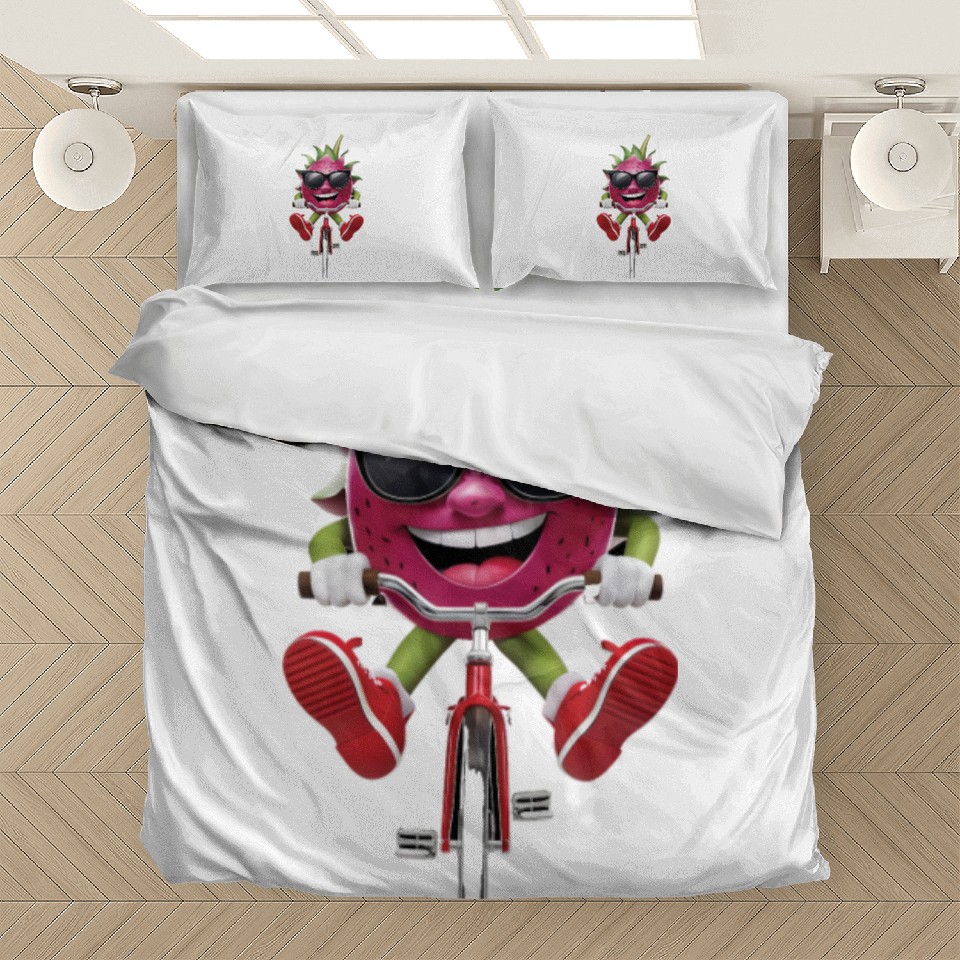 You are seeing a unique and impressive product Dragon Fruit Cycling On Bike Realistic Bedding Sets For WHITE belong theme Bedding Sets at Printblur
