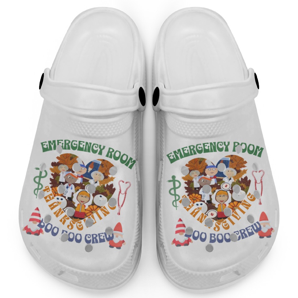 Own fascinating Emergency Room Thanksgiving Boo Boo crew Clogs or see more Clogs products now from Printblur shop to enjoy your shopping time!