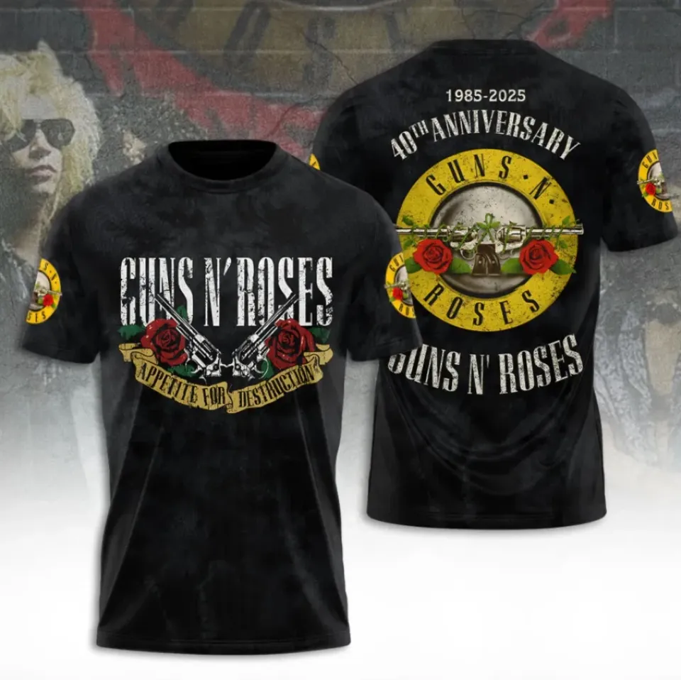 Buy stunning Guns And Roses 40Th Anniversary 1985-2025 3D T-Shirt or see more 3D T Shirts products at Printblur right now to receive many amazing discounts!