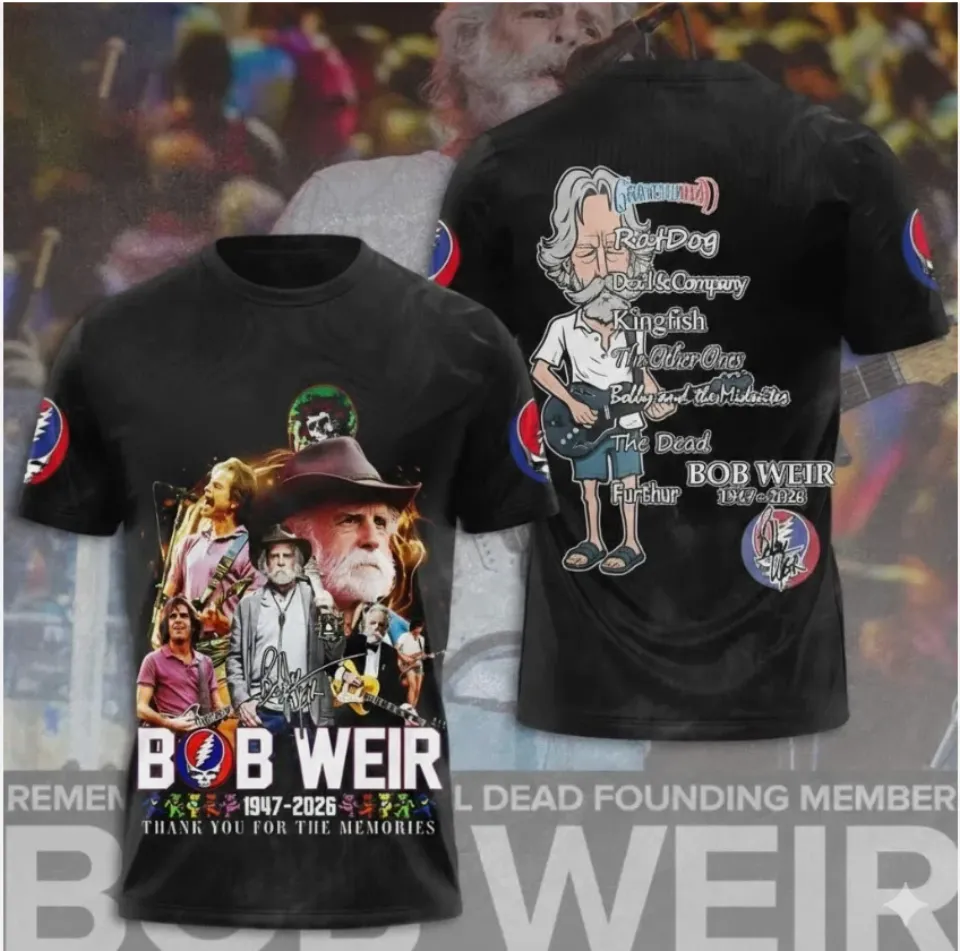Shop for attractive In Loving Memory Of Bob Weir 1947-2026 3D T-shirt or see more 3D T Shirts products on https://printblur.com right now!