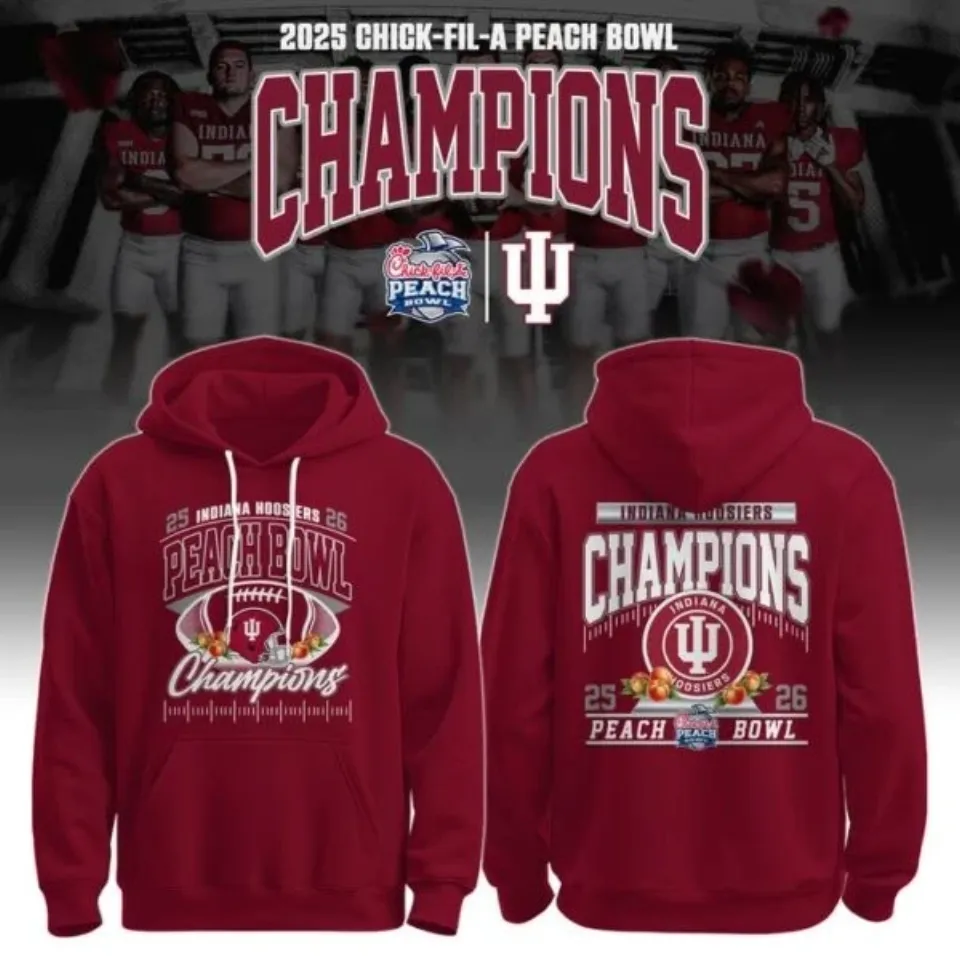 Shop for attractive Indiana 2025 Chick-fil-A Peach Bowl Champions Hoodie or see more Double Sided Hoodies products on https://printblur.com right now!