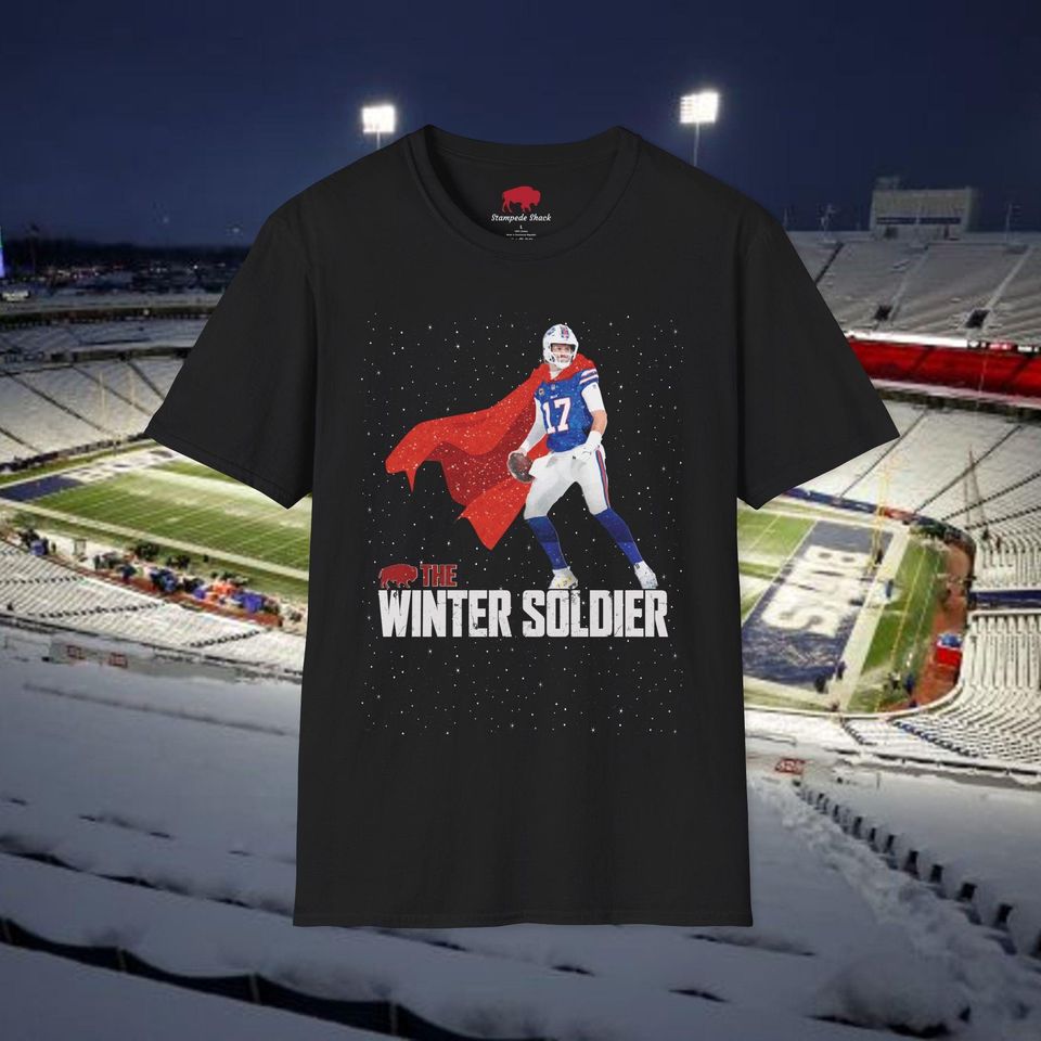 You are viewing one of the trendiest products Josh Allen Winter Soldier T-Shirt Buffalo Bills Game Day Tee For Men Black belong theme T-Shirts at Printblur