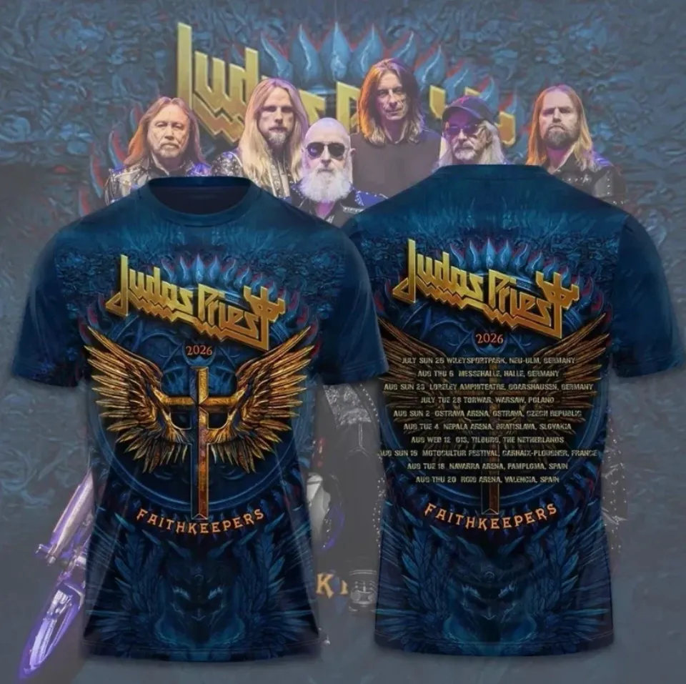Own fascinating Judas Priest Faithkeepers European Tour 2026 3D T-Shirt or see more 3D T Shirts products now from Printblur shop to enjoy your shopping time!