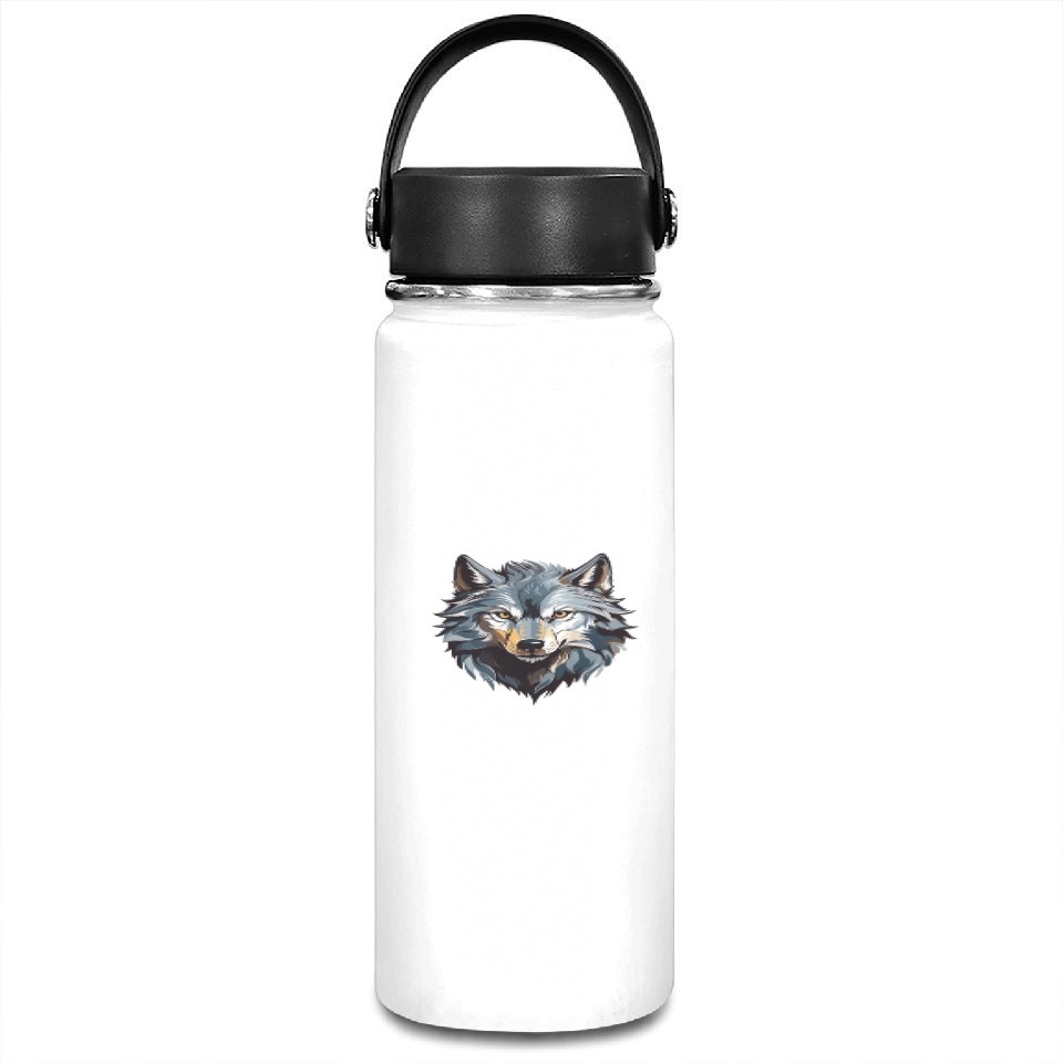 Majestic Wolf Face Illustration Vacuum Flask